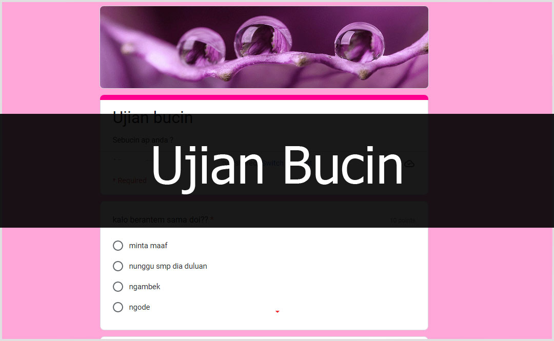 So, for those of you who want to try the viral trend on TikTok, this link for the bucin docs google form 2022 Exam is worth checking out.There are several questions that will be given that you must fill out in the bucin docs google form exam. So, with the answers that have been filled in, you will get the bucin docs google form exam score. The score will determine how angry you are with your partner.